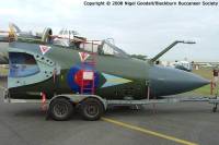 Auctioned off in 2000, she was bought by a collector who planned to transport her to a museum in Belgium - sadly this fell through, as did another plan to display her somewhere in the UK as a memorial to the Buccaneer's chief designer, Roy Boot. She was put up for sale once more and bought by the OFMC to provide spares for XX885 and scrapped once spares recovery was complete. The nose was earmarked for the Belgian collector but once again he failed to transport her out of the UK so she went to Phoenix Aviation before being bought by her current owner. John mounted her on a trailer for use as a traveling exhibit but displayed her at the South Yorkshire Aircraft Museum, AeroVenture for the majority of the time. In 2020 XZ431 was moved to Southend Airport where it received a fresh lick of paint from the volunteers at the Vulcan Restoration Trust who have done an amazing job of it. She's then returned to the South Yorkshire Air Museum where it is kept undercover. XZ431 is currently back at Southend Airport for a brief visit this winter while the Vulcan Restoration Trust touches up the paintwork ready for traveling around the country again in 2022.