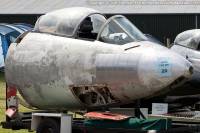 A mystery Sea Hawk nose, this one. Displayed at the now long-defunct Wales Aircraft Museum in Cardiff, initially in red and then extra dark sea grey colours, it moved on to a new owner and was squirrelled away in a garage in Somerset for 20 years or so. In 2008 Graham Sparkes acquired her and during his restoration efforts and research into a possible identity, came to the conclusion that it is now thought to have been an unused FGA.4 nose section that was never finished off and never used on a full airframe, due to a variety of missing details.