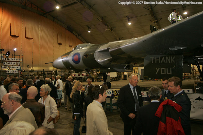 Amid much ceremony and overflights by the BBMF Lancaster, XH558 was 'rolled out' in front of an appreciative crowd to celebrate the successful acquisition of enough funds to get her as far as the first test flight. From schoolboys' pocket money to the hefty donation of a millionaire, this was an aircraft restoration funded unlike any other. Unfortunately work was slower than expected, and she missed her starring role in the Falklands Flypast over London in June 2007, and it was not until September that she began engine running trials, bringing a roaring Olympus back to life at Bruntingthorpe for the first time in 8 years.