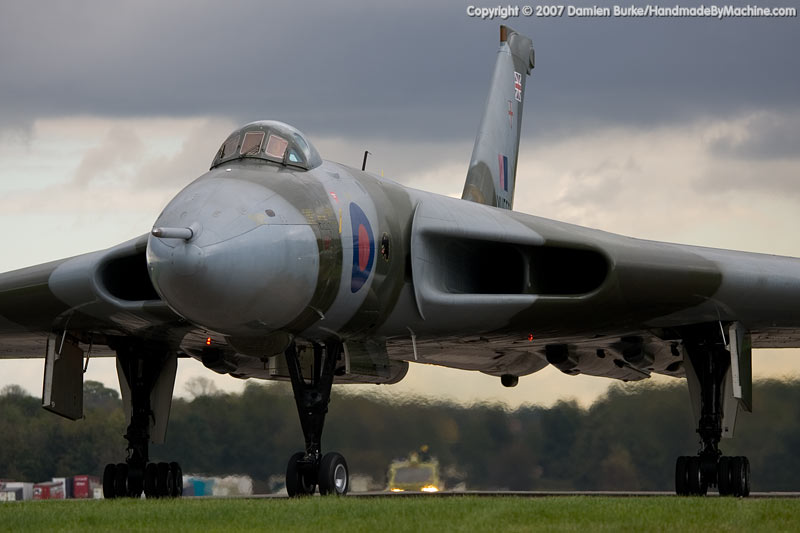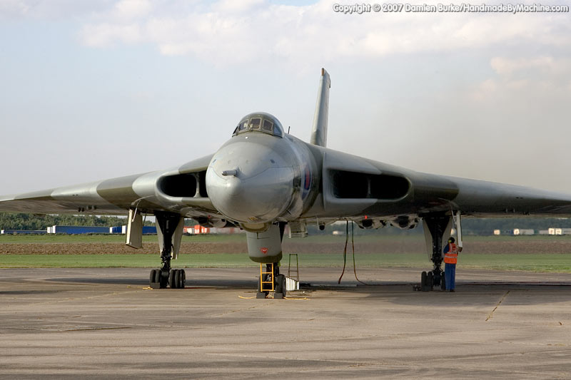 The Vulcan is a cold war icon; everybody's seen the old film footage of these bat-winged white shapes getting airborne with a howl of engines, pouring black smoke from their exhausts and carrying a bomb load of instant sunshine during mock scrambles. Acting as an important part of the NATO nuclear deterrent against the Warsaw Pact, the bright white futuristic shapes were soon camouflaged and retasked with low-level penetration of the vast expanses of the Soviet Union. With advances in the technology of mutually assured destruction, the Vulcan and her sisters in the V-force were soon sidelined by the nuclear submarine, but the Vulcan was kept on as a conventional bomber (while the Victors became tankers and the Valiants found life at low level too tough, and were retired).