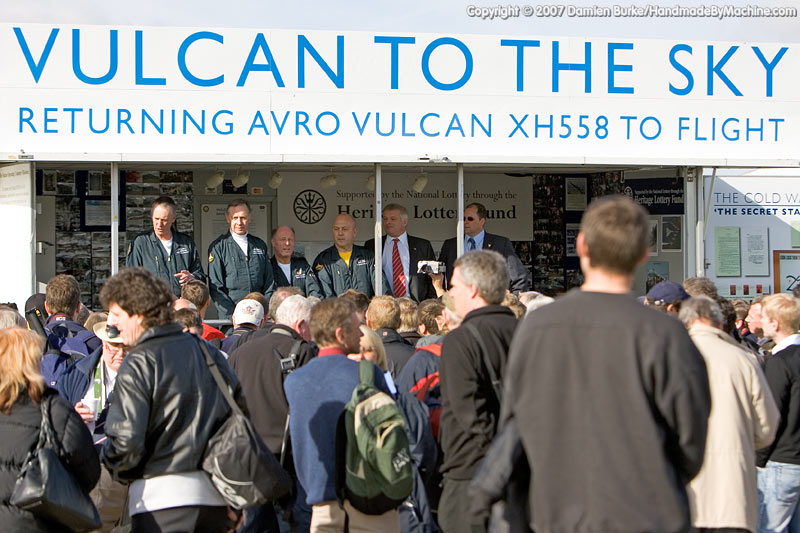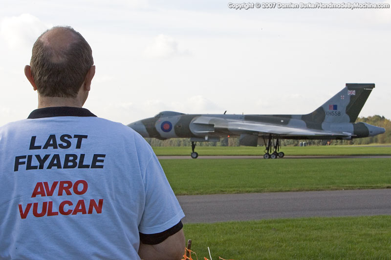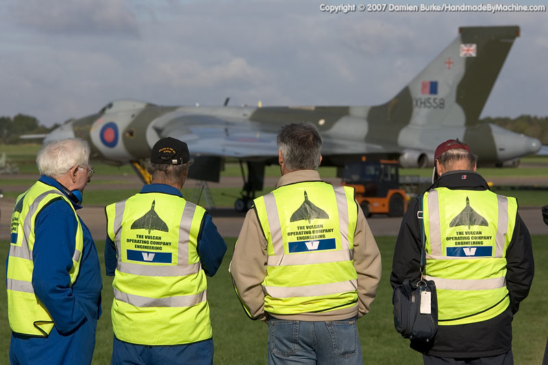So it was on a foggy morning that various media and VIPs arrived at Bruntingthorpe while the roads outside became ever more clogged by Vulcan fans who had heard about the first flight date from friends, from local radio, from forums on the internet... it was the 18th of October, the sky was blue, and the last tendrils of mist were dissipating from a cold and damp field in the middle of Leicestershire.