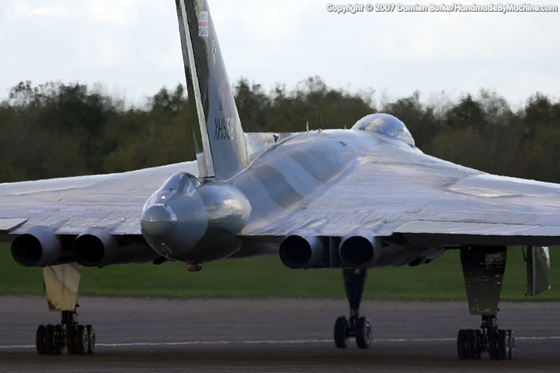 Six more test flights followed in early 2008, with XH558 flying to RAF Cottesmore on 14th April, followed by a return to Bruntingthorpe on 16th April (a shorter flight, as one of the main gear doors refused to retract). These were followed by a flight to RAF Coningsby (for a compass swing) on 6th May and a return to Bruntingthorpe on 9th May. The test programme was completed with a further flight on 9th June (which included some display practice), and a few radio snags were then sorted before another short flight on 23rd June (another flight including some display practice).